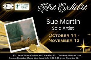 • Venue : Camden Art Shoppes - 1011 Broad Street, Camden SC (TenEleven Galleria Mall) - First Floor Elevator Lobby